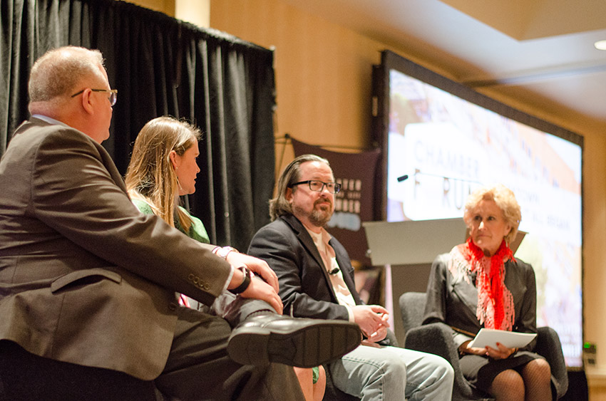 The last Chamber Forum of 2017 featured a panel comprised of Chad Huntington, Bricktown Water Taxi; Mallory O’Neill, Downtown OKC; and Charles Stout, Bricktown Brewery. Judy Hatfield, Greater Oklahoma City vice chair, Military & Aerospace, served as moderator and deftly steered the conversation through topics that included anticipated impact of the new streetcar, ongoing construction, residential opportunities and impact, the visitor experience, the completion and impact of Oklahoma Boulevard and the connectivity with other OKC districts.