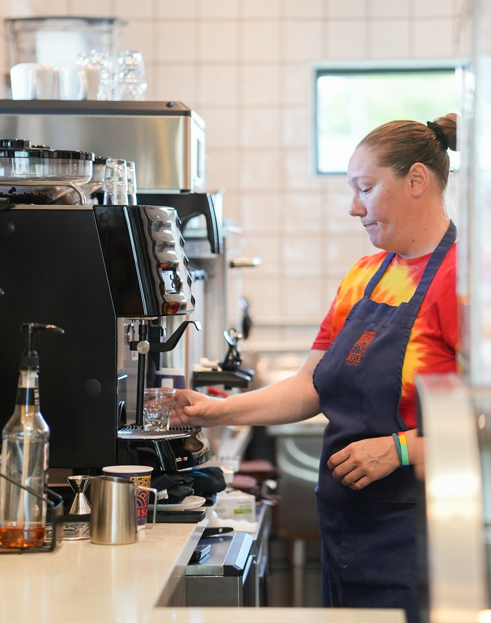 Kellie Sapp prepares an espresso drink.