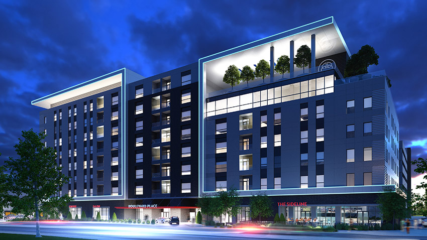 The $53 million Boulevard Place is designed at eight stories tall with 241 apartments, while the competing proposals were all five stories or less with 192 to 221 residences.