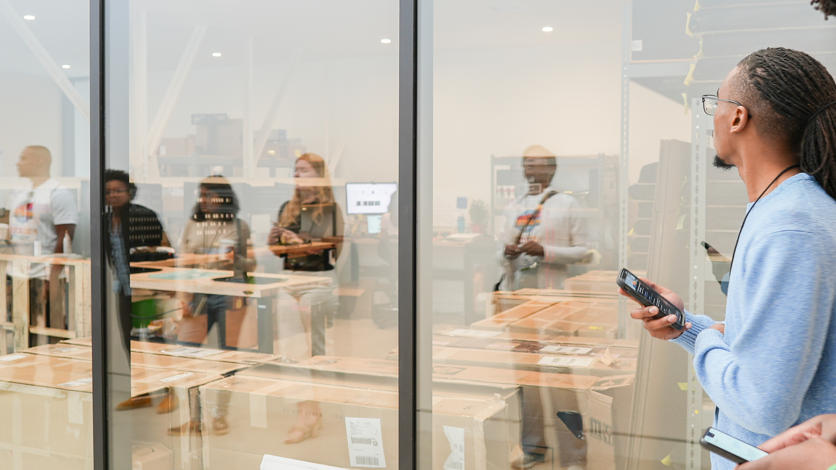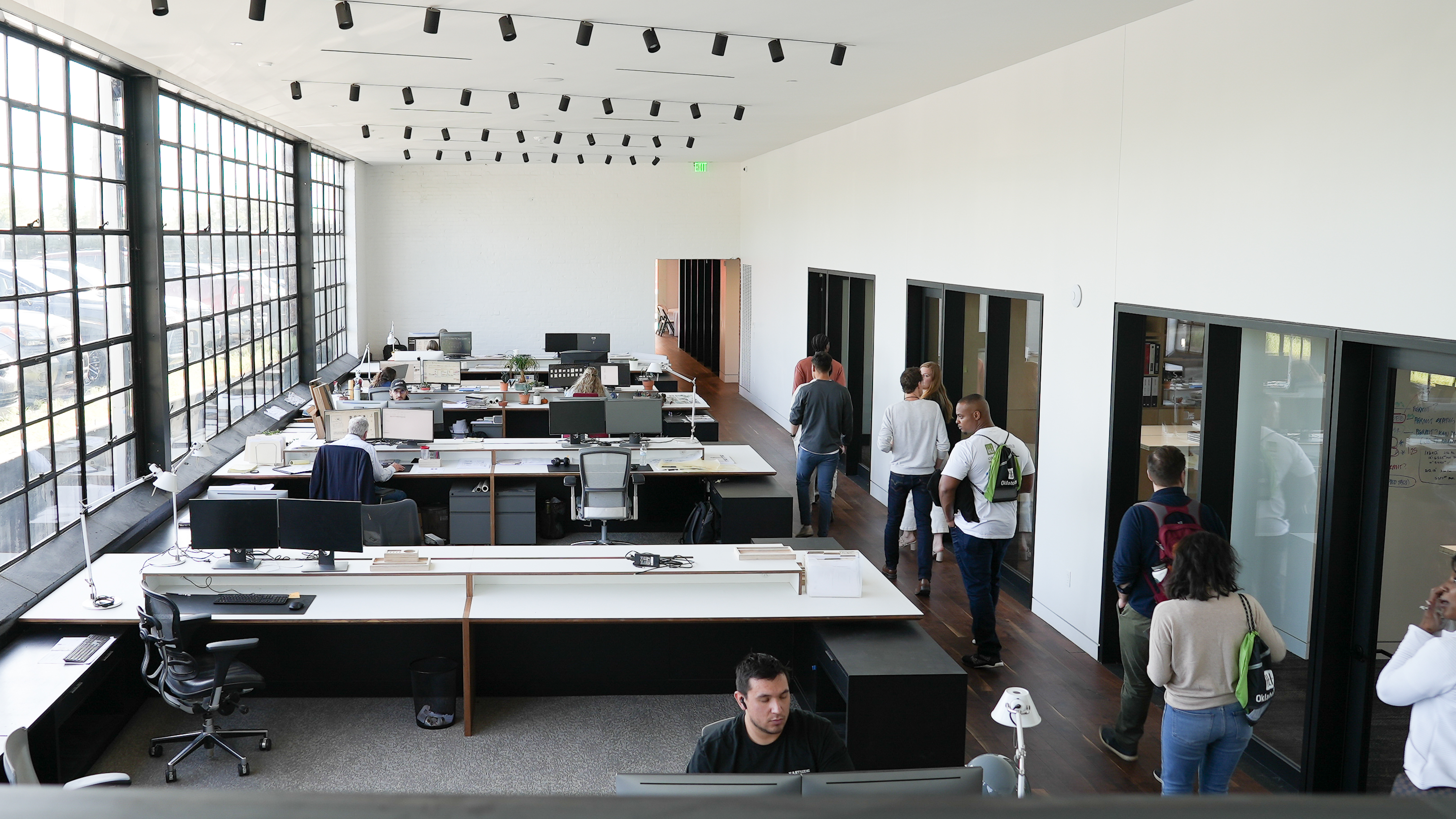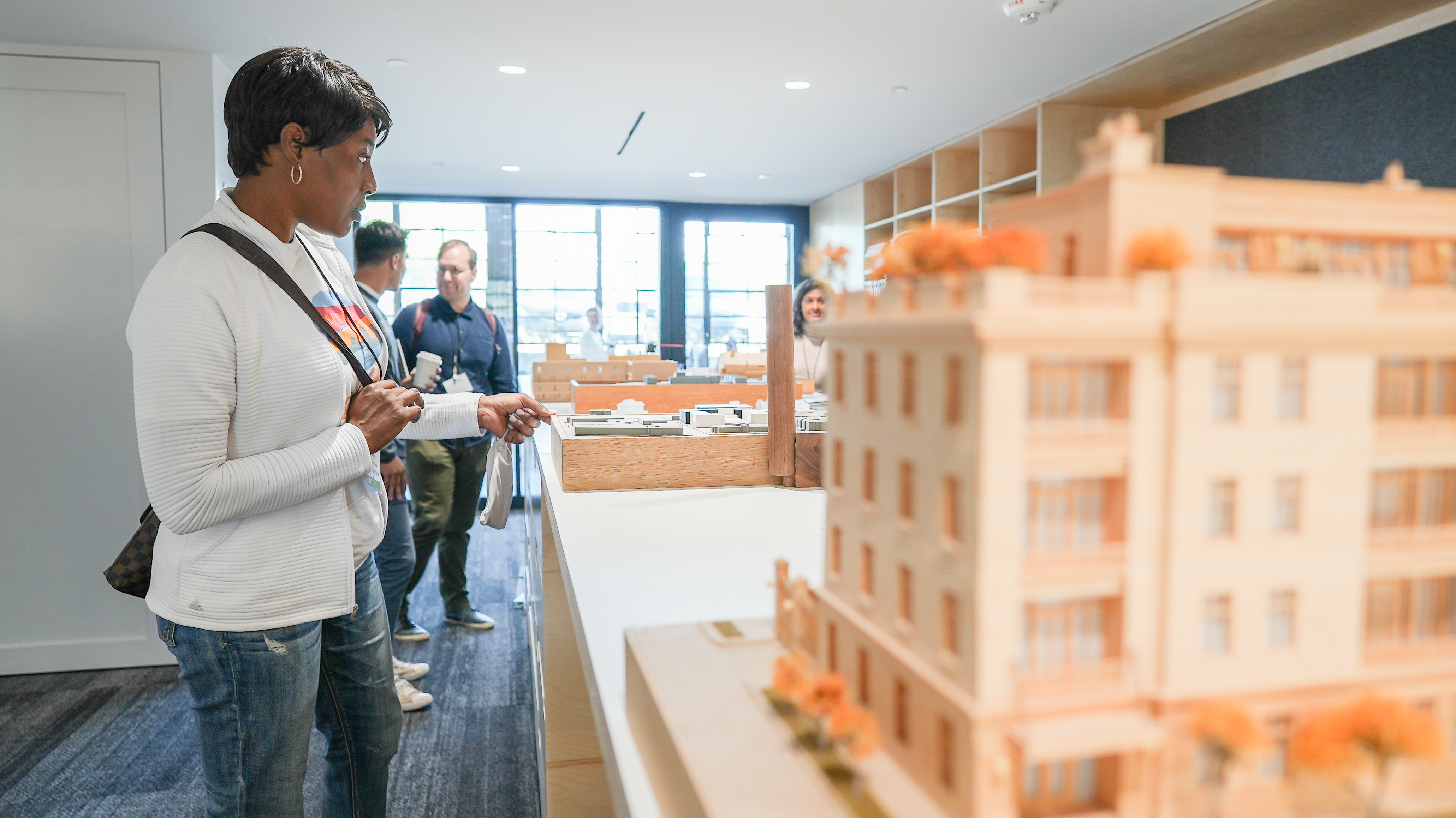 (Top) PlaceKeepers Cultural Exchange attendees discuss development details with Pivot Partner and VP of Acquisitions and Development, Candace Baitz. (Middle) NEOKCR Board member DeAndre Martin tours Pivot's 301 site. (Bottom) PlaceKeepers Cultural Exchange attendees tour Gardner.Studio office space.
