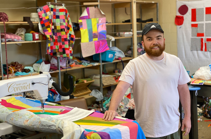 Tanner Frost Bowen, one of the studio artists renting space at the PACC. His quilting work can be found on Instagram @patchwerrrk