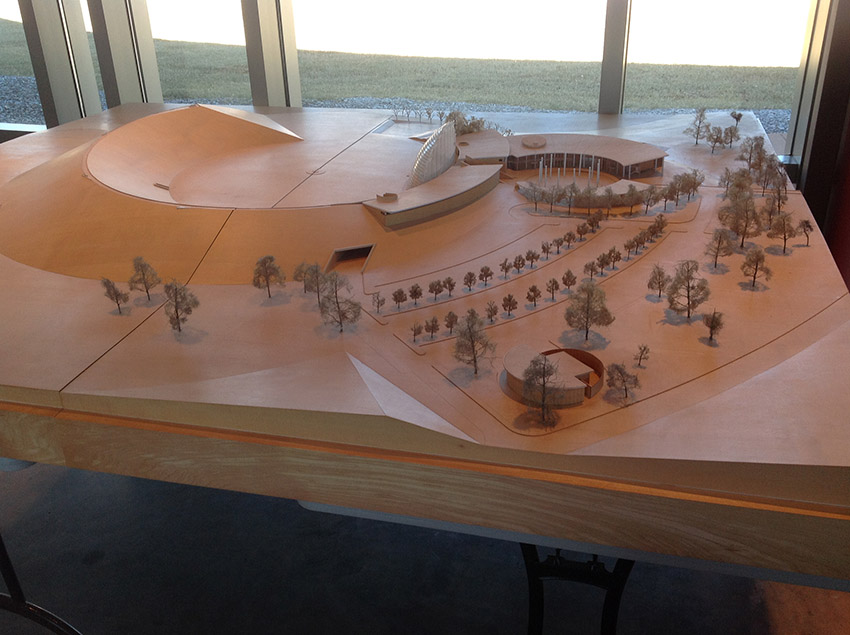 With only installation of glass on the Hall of the People remaining as far as major exterior construction is concerned, focus is now shifting to the interior spaces. The complex’s architecture is intended to reflect what has been in common to all the native peoples and tribes, so Wasserman explained that there is lots of circularity, for example, reflecting the way native peoples often think of time rather than as a linear flow, and other aspects indicative of native cultures. Water, wind, fire and earth are natural elements common to native peoples (and all peoples, really) that have some representation in the facility. All of the museum staff is currently native, and they have had a hand in architecture and decor as well as planned educational offerings, including those which will utilize an exciting new 250-seat theater space.