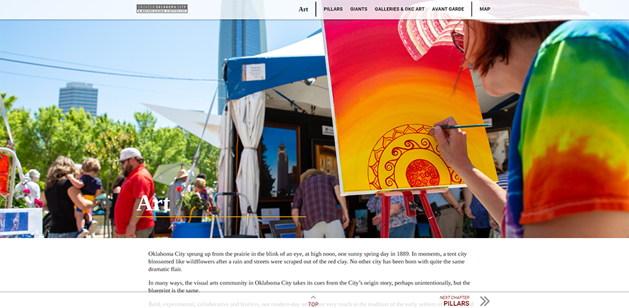 The online storytelling module is separated into four chapters that show off the indispensable people and organizations that serve as the backbone to Oklahoma City’s thriving arts community.