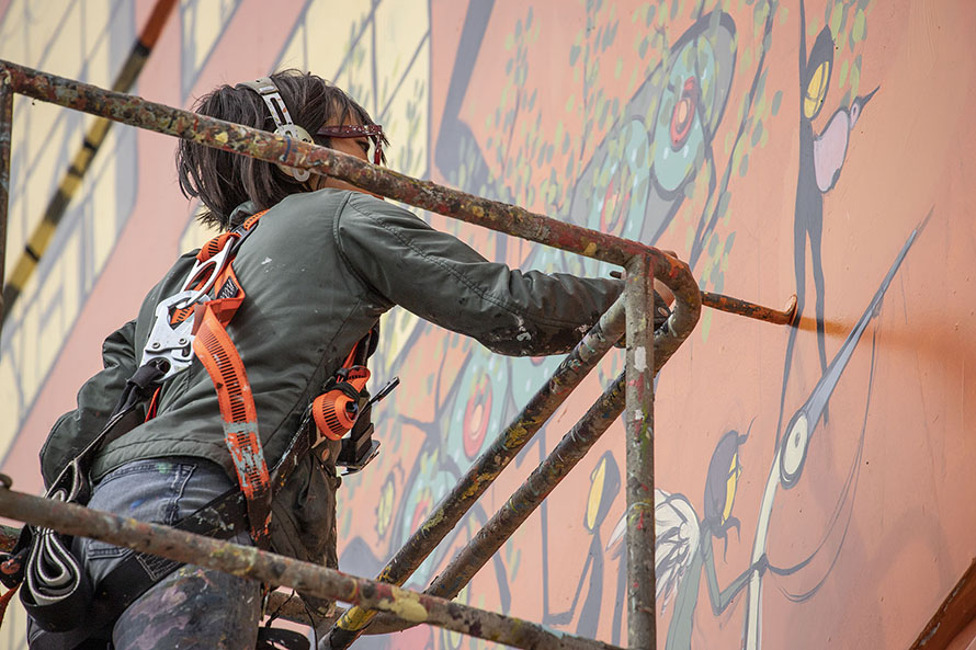 Denise Doung paints a mural in Oklahoma City.