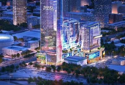 - Boardwalk at Bricktown: A major mixed-use project underway by developer Scot Matteson. The first phase includes two 23-story residential towers—Ruby and Emerald—with 716 apartments, a 22-story Dream Hotel by Hyatt with 480 rooms and 85 condos, and 200,000 square feet of restaurant and entertainment space. The plan also includes a central lagoon and boardwalk. A future phase proposes Legends Tower, which at 1,907 feet would be the tallest building in the United States pending FAA approval.