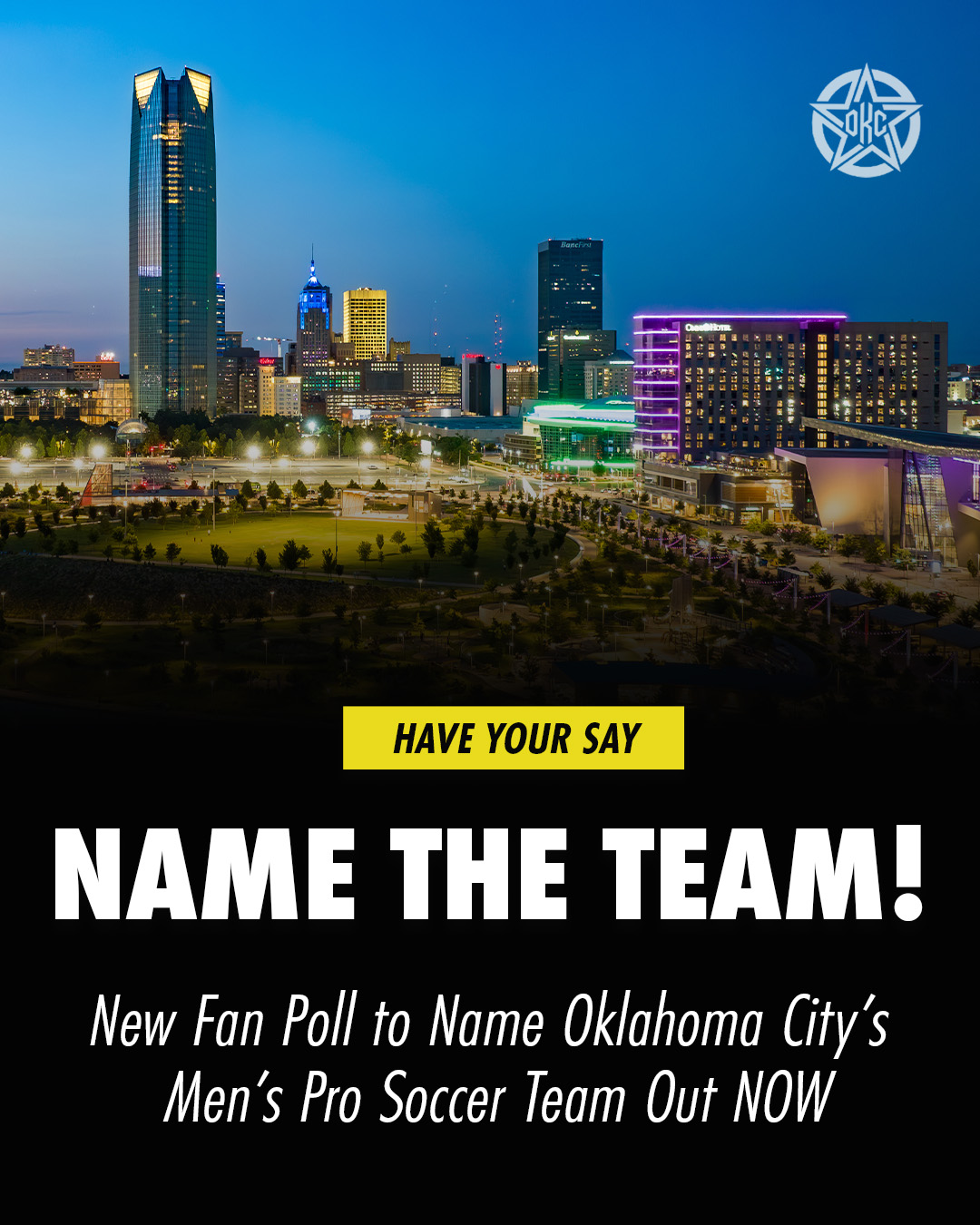 OKC for Soccer | OKC es Fútbol, the initiative for reimagining professional soccer in Oklahoma City, launched its “Name the Team!” campaign to give fans a central role in shaping the identity of the club.