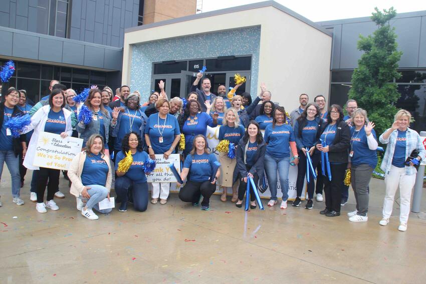 OKCPS and Oklahoma City Public Schools Foundation officials await the arrivals of the nine OKCPS Teacher of the Year finalists during today’s Stars of Education drive-thru parade held at the Clara Luper Center for Educational Services.