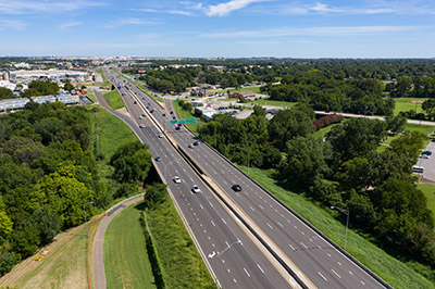 This project of up to $105 million will reconstruct and widen I-235 to at least six lanes between North 50th Street and Northwest 63rd Street and construct a four-level interchange with flyover ramps. The project began in late March 2019 and continues through fall 2021.
