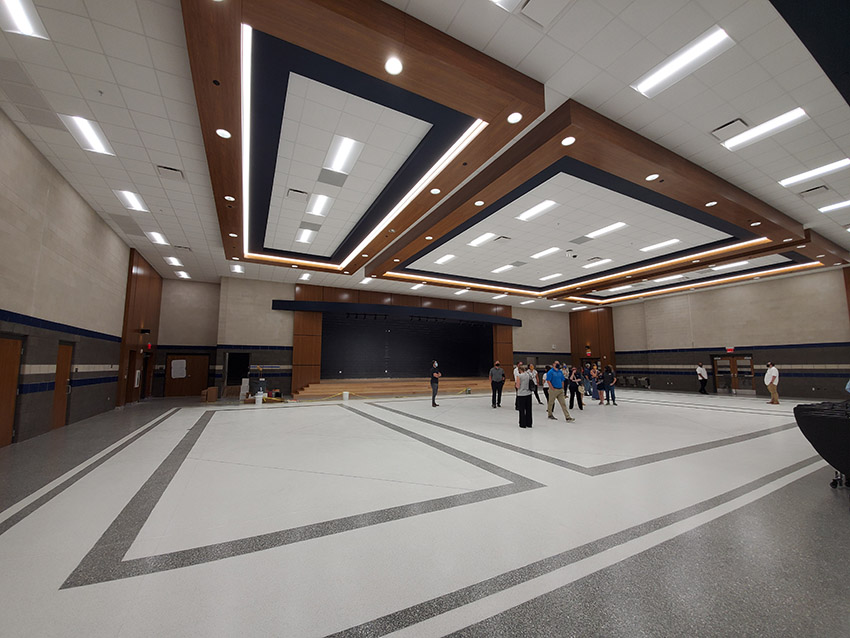 The key design element in the school is the cafeteria, which can be used as an event space for the district, holding up to 750 people at round tables. There’s a stage in the cafeteria and a top-level sound system. Tippens said, when allowed again, the district’s foundation is already planning to host class reunions and sports banquets in the space.