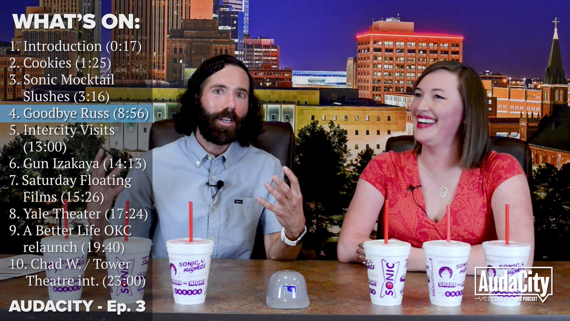 Episode 3 delves into a lot of things going on around OKC: Cookies and other sweets, a taste test of the new Sonic Mocktail Slushes (including the Reaper Spicy Margarita), and a moment of commiseration over the departure of OKC’s favorite adopted son, Russell Westbrook. We also discuss 84 Hospitality’s new Japanese yakitori concept Gun in the Paseo Arts District, free Saturday Floating Films at RIVERSPORT Rapids in August, Steve Mason’s Yale Theater redevelopment in Capitol Hill, the relaunch of abetterlifeokc.com, and some info about Tower Theatre’s new Projector Club and an interview with Tower Theatre’s Operating Partner Chad Whitehead. YouTube | Apple Podcasts | Google Play | MP3