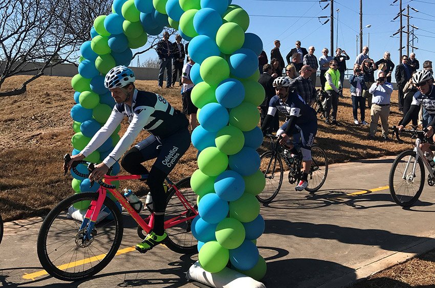 Cyclists and community leaders celebrated the opening of the MAPS 3 Will Rogers Trail in March.