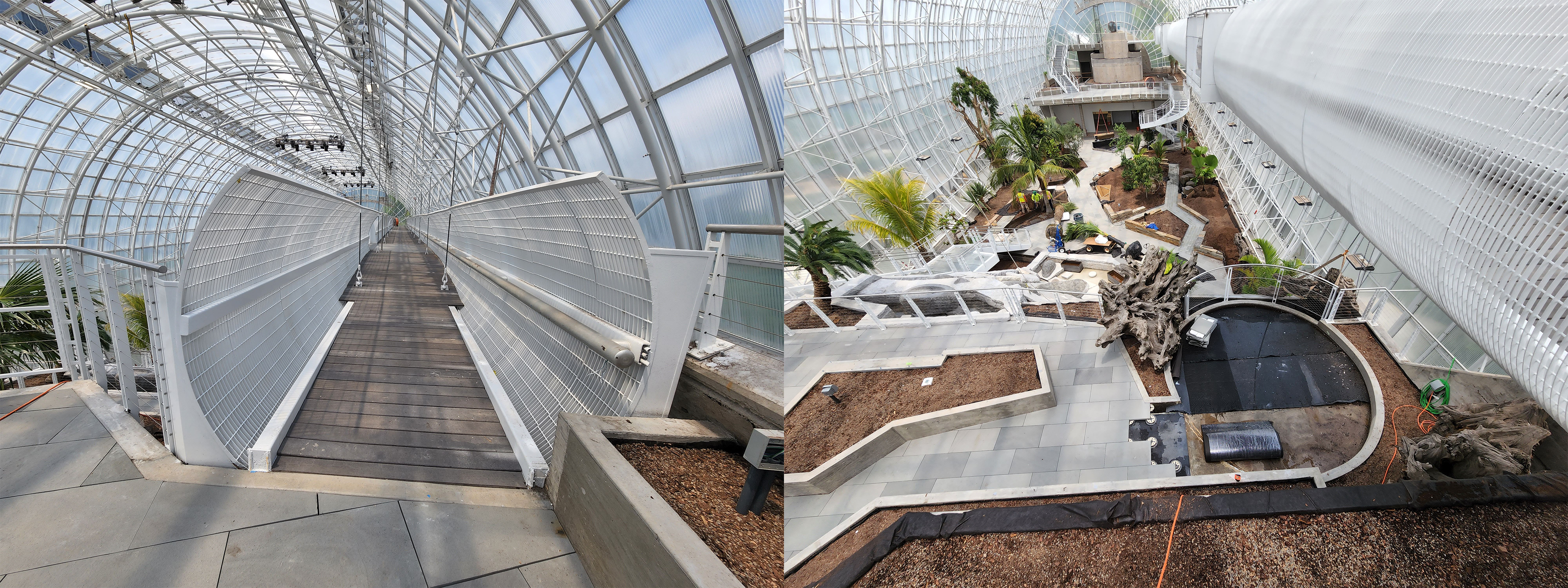 The renovated Inasmuch Foundation Crystal Bridge Conservatory will now educate the public through interpretive signage and interactive exhibits, as well as a classroom and Discovery Room for children and families. The bridge will also incorporate new pathways and views from the third floor skywalk, a waterfall, a reflecting pool, new terraces, and more in addition to the thousands of new plants that are to be installed. ADA accessibility has been improved, as well.