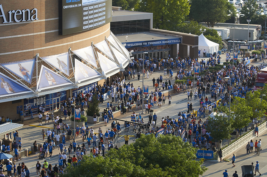 By 2011–12, the team’s momentum and notoriety had increased. During the 2012 playoffs, Oklahoma City beat the San Antonio Spurs to advance to the NBA Finals. While that series ended in a loss to the Miami Heat, it brought undeniable global attention to the team––and by extension, to Oklahoma City. That year, ESPN’s The Magazine named Oklahoma City as No. 1 in their ultimate franchise rankings based on the value the fan base placed on their team.