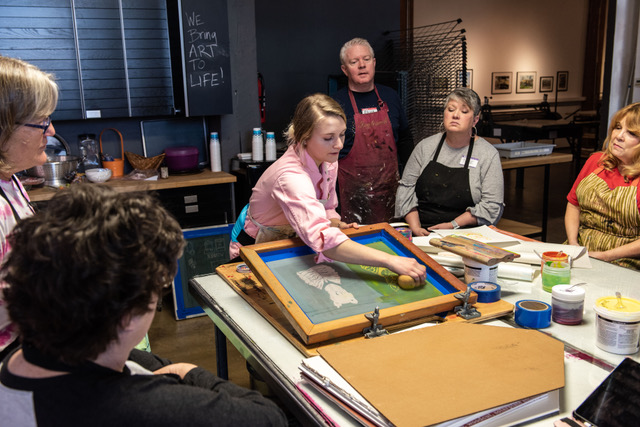 Virginia Sitzes demonstrates various screenprinting techniques.