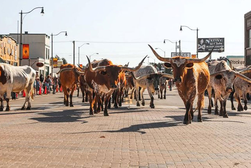 The festivities kick off at 10 a.m. with the majestic Slash O' Ranch Longhorns parading down the streets of historic Stockyards City. They’ll start their journey under the iconic Oklahoma National Stockyards archway on Exchange and make their way to the National Saddlery Arena where they will stay until 2 p.m.