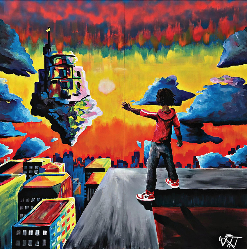 This Douglass High School grad has been working hard to make his mark on the OKC art scene and it is beginning to show. In 2019 he entered the Artspace at Untitled Mentorship Program and was recognized with the 2019 Outstanding Senior Award. Soon after, Thompson Johnson was afforded the opportunity to work as an assistant to local artist Markus Muse assisting him with the Royal Tones mural now displayed on the Jeltz Senior Living Center. He also showcased a mural in the Still Here exhibit in the Myriad Gardens and created a site-specific piece for the Plaza District as well.
