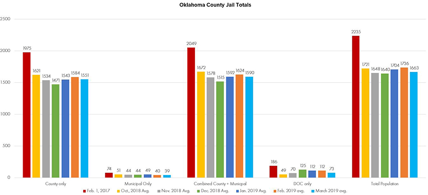 The Oklahoma County Criminal Justice Advisory Council (CJAC), an interlocal organization formed to provide oversight and accountability for the local justice system, released its third quarterly report of the fiscal year chronicling the progress being made on justice reform efforts. Since November 2017, the Oklahoma County CJAC has focused on implementing the six key reform recommendations made by the Vera Institute of Justice to the Greater Oklahoma City Chamber's task force on justice reform. Read on for an excerpt of the data found in the CJAC's third quarterly report.
